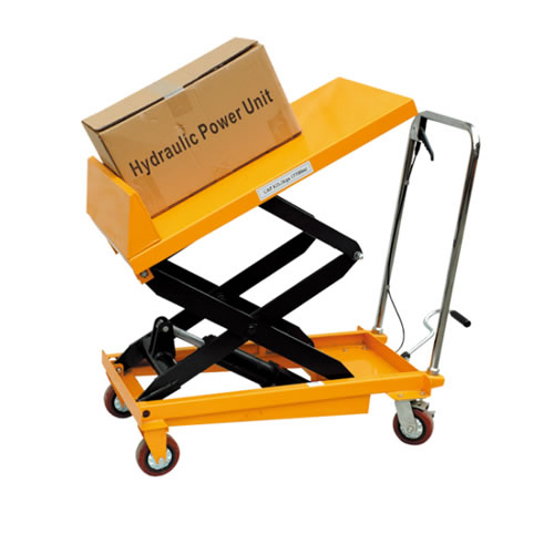 冠航牌手推式可傾斜升降平臺車貨物運輸車